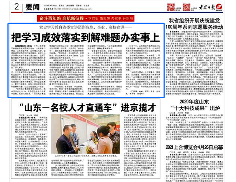 4月16日,中共山东省委党报《大众日报》二版头条刊发本次活动消息